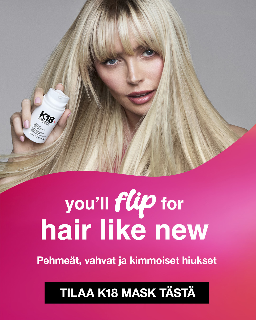 Vaikutusajan jälkeen voit lisätä hiuksiin jätettävän tai poishuuhdeltavan hoitoaineen. Koostumukseltaan kevyt K18Hair Mask jättää hiukset ilmaviksi.